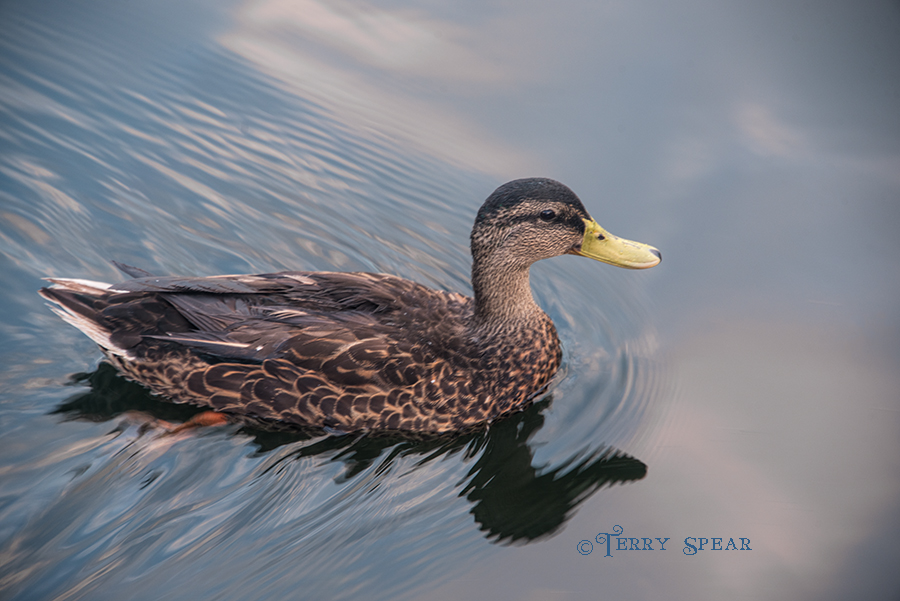 duck leaving a wake and clouds reflected in the water 900 Orlando Disney RWA 2017 3304 Aug2 Published at 900 × 601